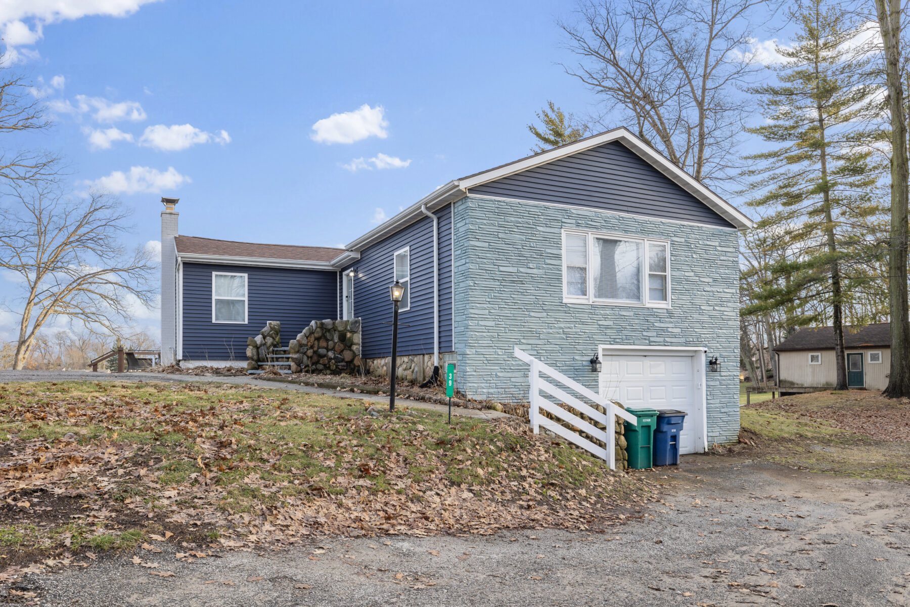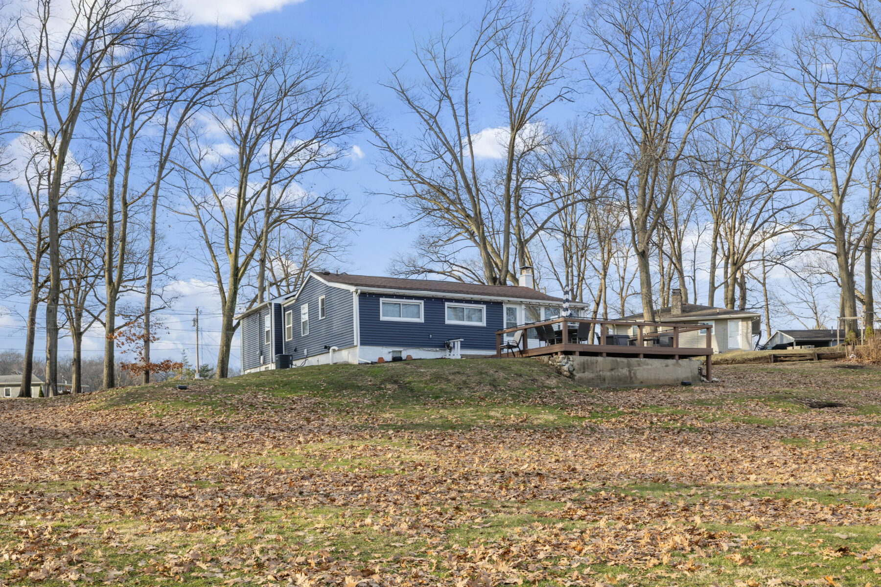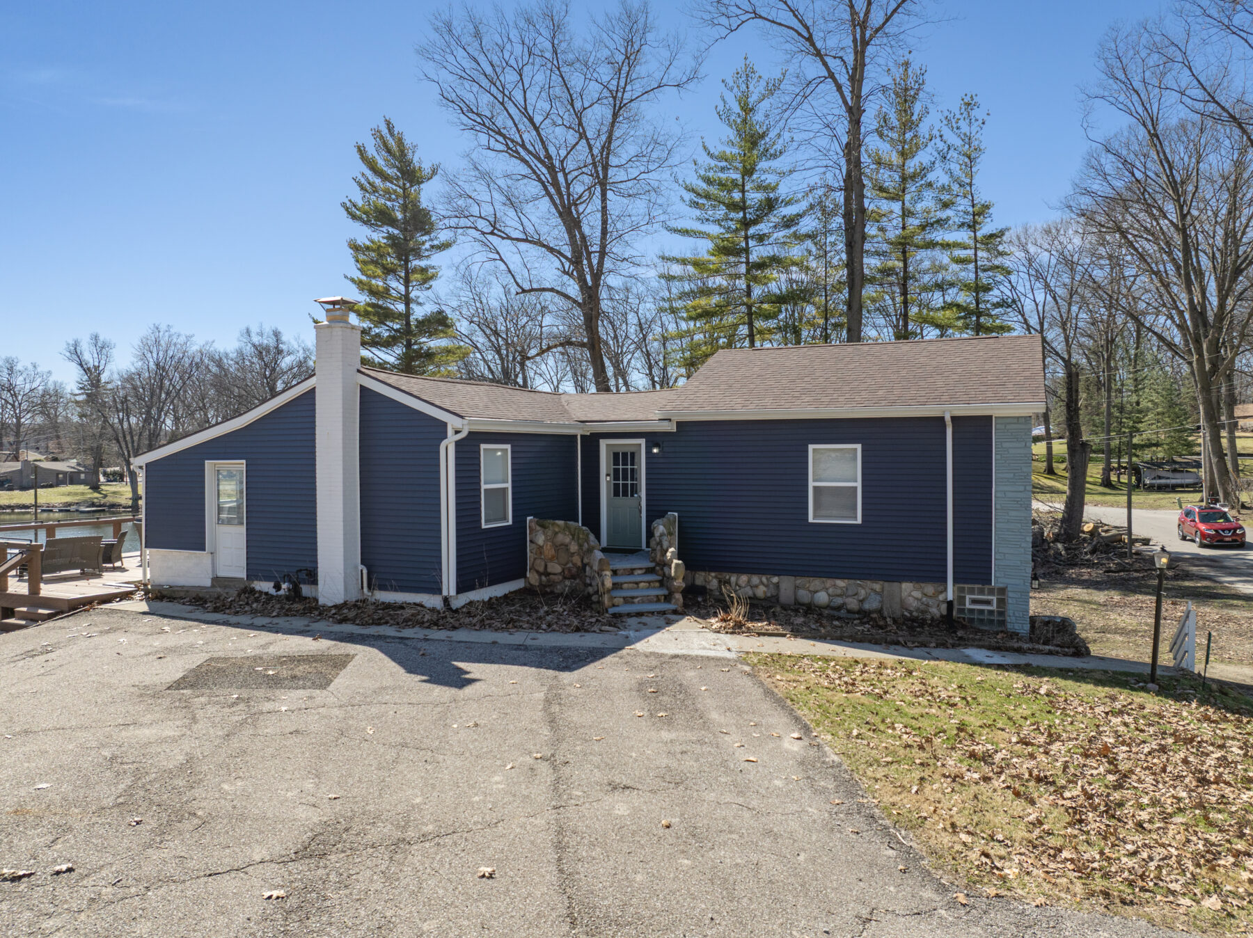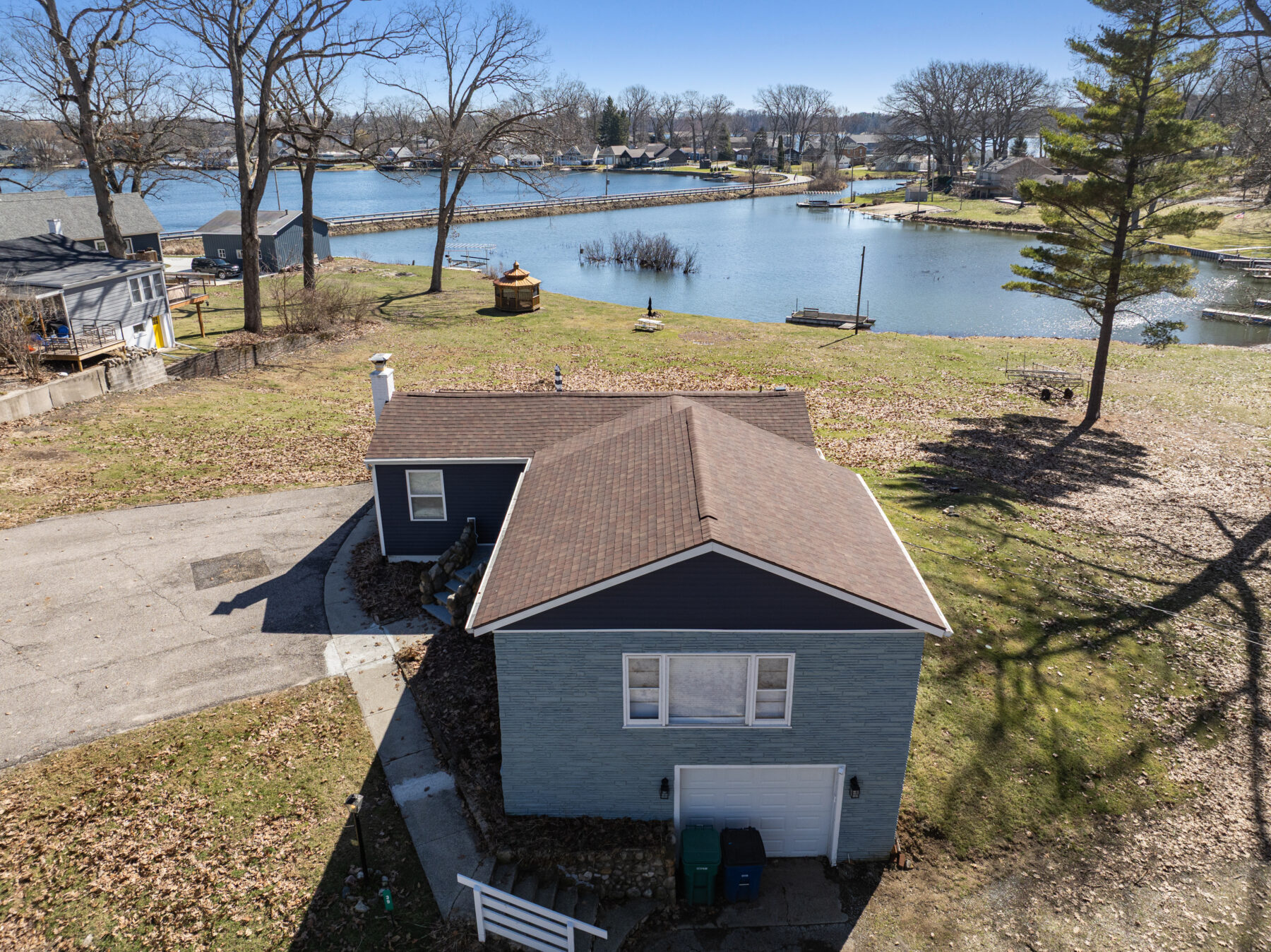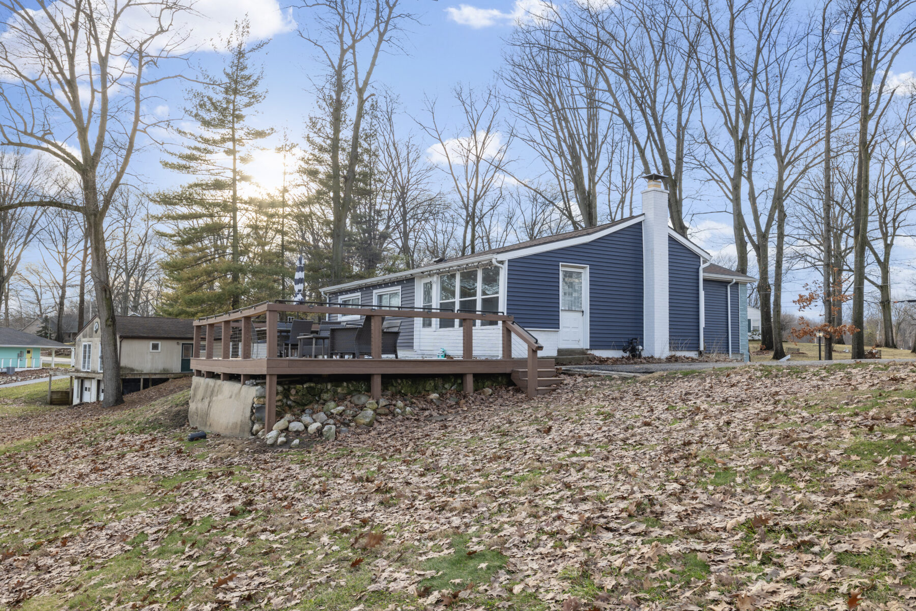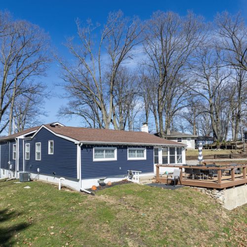 • The yard and lot slope downhill toward the lake; please use caution, especially with children.
