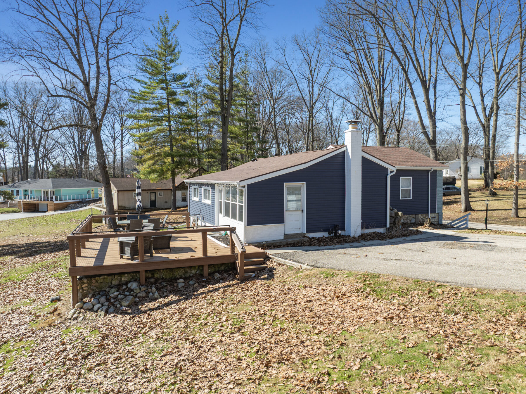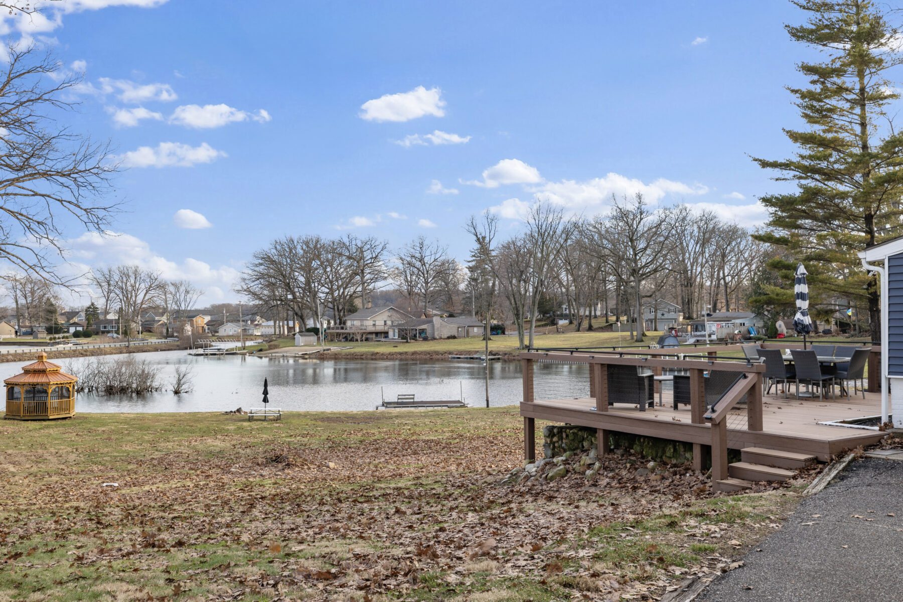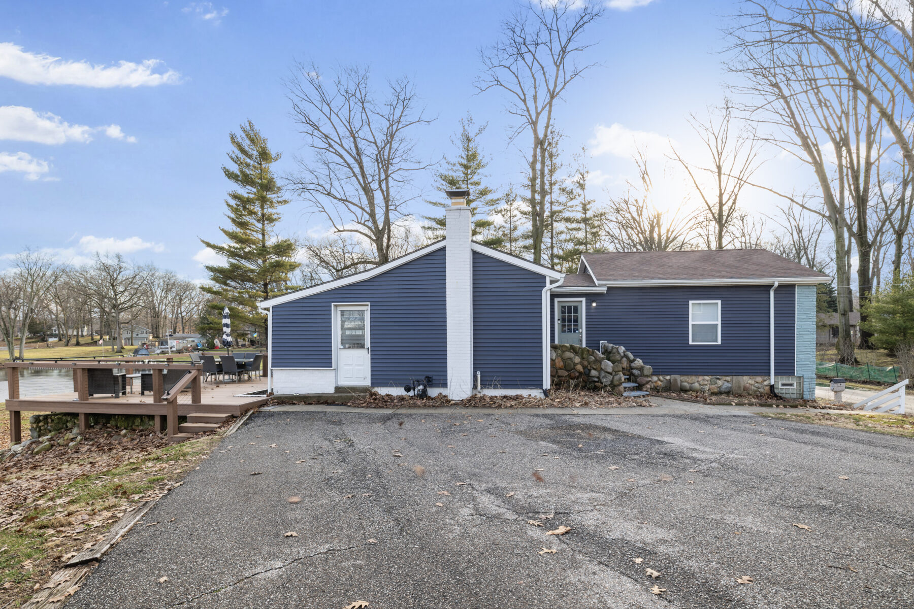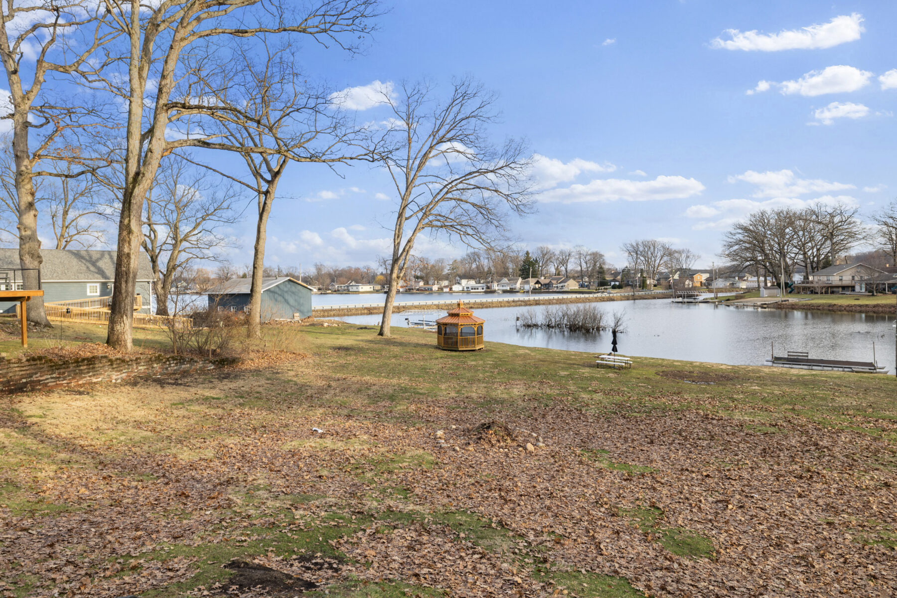 • The yard and lot slope downhill toward the lake; please use caution, especially with children.