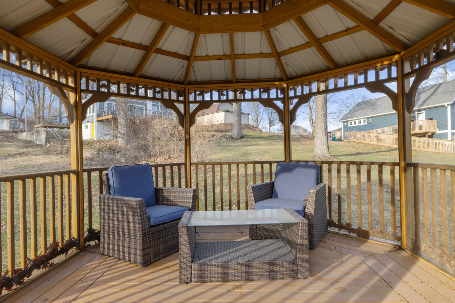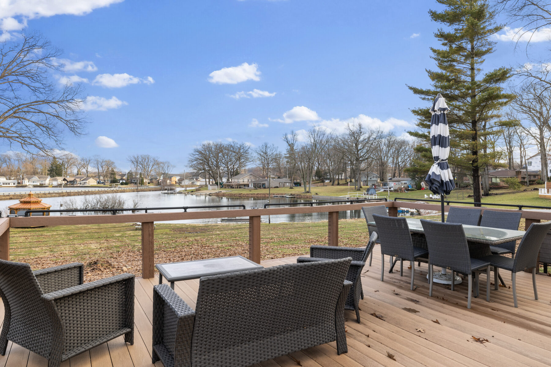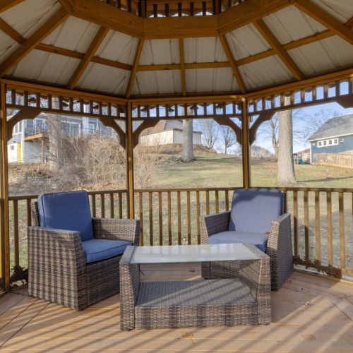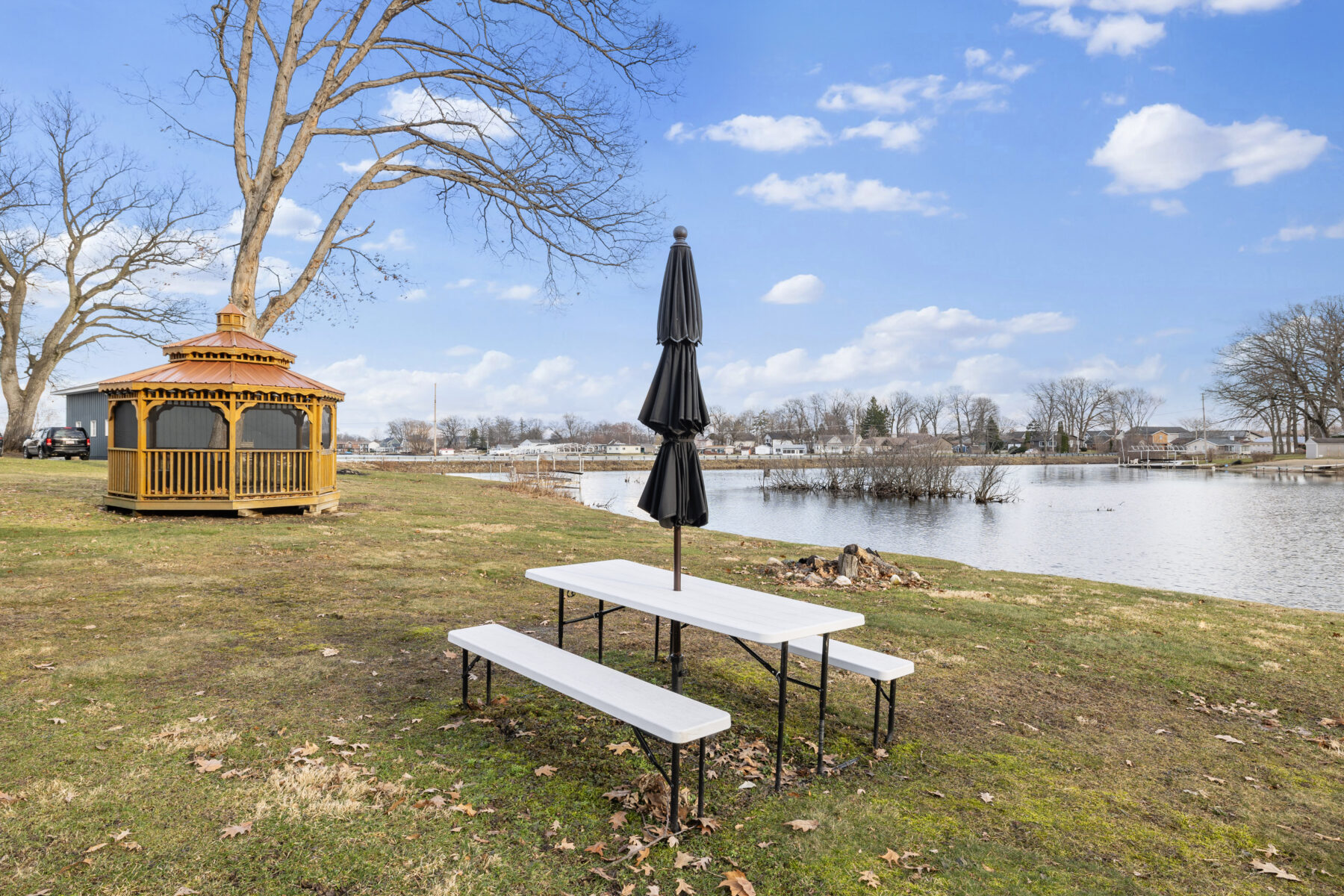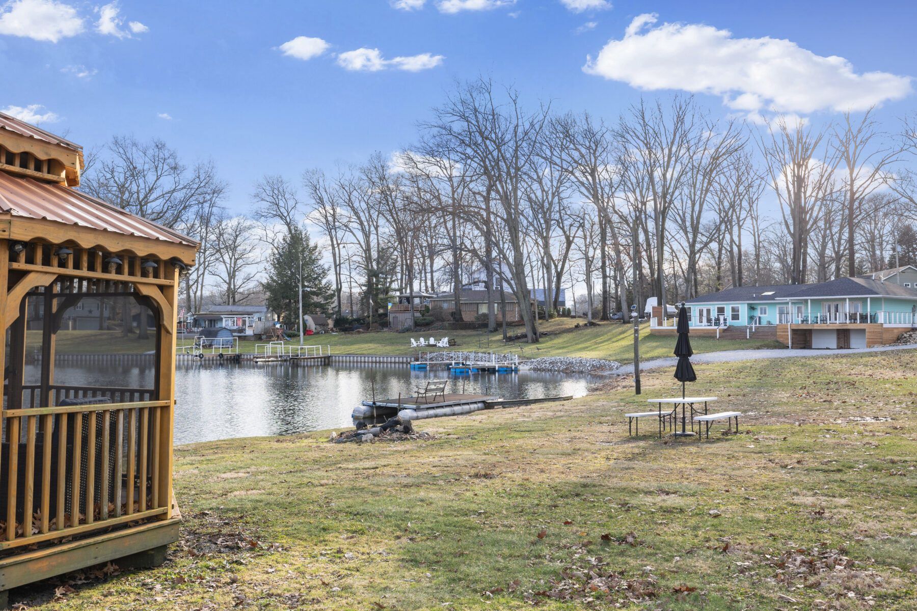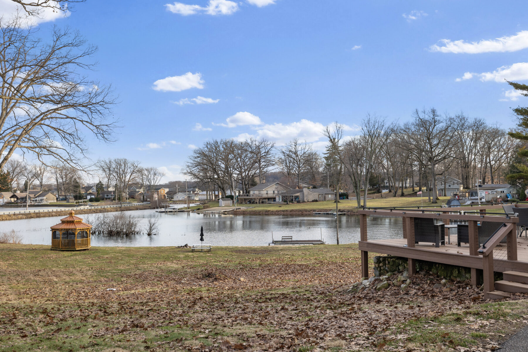 • The yard and lot slope downhill toward the lake; please use caution, especially with children.