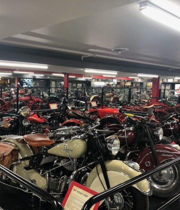 The Rocky Mountain Motorcycle Museum in Colorado Springs is a free, volunteer-run museum dedicated to preserving the history of motorcycling. Located on the second floor of the Tejon Eatery, it houses over 75 fully restored motorcycles from the early 1900s through the 1970s, representing brands such as Harley-Davidson, Honda, and Triumph. In addition to the bike collection, the museum features a Hall of Fame honoring motorcycling pioneers, a library of technical literature, and a diverse array of memorabilia, including photographs, trophies, and vintage gear.