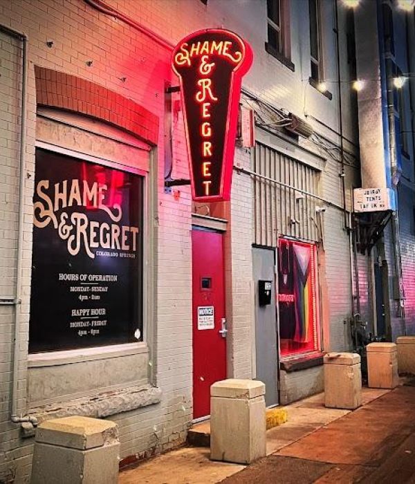 Shame & Regret is a hidden gem in downtown Colorado Springs, offering an intimate and stylish atmosphere reminiscent of a speakeasy. Located in a back alley, patrons are welcomed by string lights and a neon sign leading to the venue. Inside, guests can enjoy a vast selection of over 230 whiskeys, including 120 single malts, and expertly crafted cocktails. The ambiance features tufted leather booths and gothic decor, providing a cozy yet upscale setting. With no TVs and a focus on quality drinks and conversation, it’s a perfect spot for a relaxed evening out.